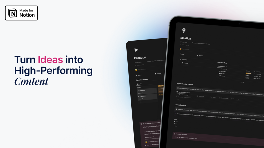 Save hours on planning and disorganised content creation for your TikTok creator business with an AI-Powered Notion template